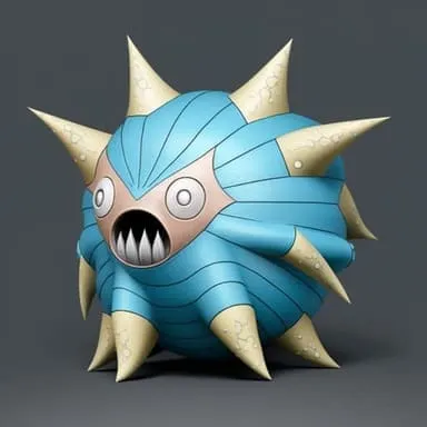 Omanyte is a small, blue, spiral-shelled Pokémon with four tentacles and a large shell. Its eyes are white, and it has two spikes on its head that resemble the teeth of an ancient jawless fish called Anomalacaris. It also has two tentacles on either side of its shell that it uses to eat food or attack enemies.
