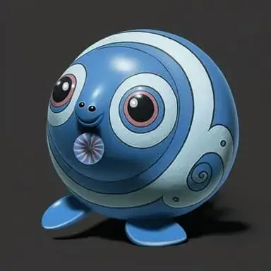 Wobbuffet is a Psychic-type Pokémon. It has a light blue body with a white belly and black spots on its back. It has two antennae on its head, which are tipped with black spheres.