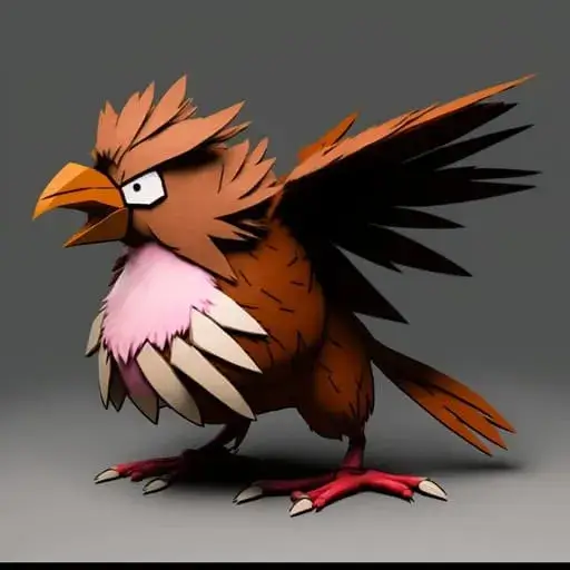 Spearow is a small, brown bird with a short beak, large eyes and two long feathers that form its tail. It has three toes on each foot and two sharp claws for feet.