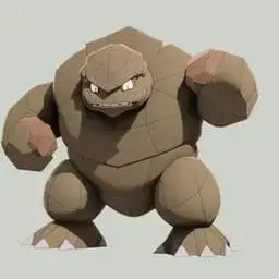 Golem, the Rock/Ground-type Pokémon. It's one of the original 151 Pokémon created by Ken Sugimori, first appearing in the first generation games Red and Blue. Golem evolves from Graveler when traded.