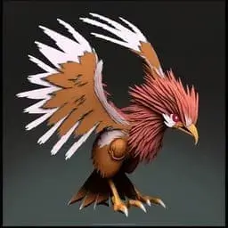 In the Pokémon games, Fearow is a large, brown avian Pokémon with an elongated beak and black feathers on its head.