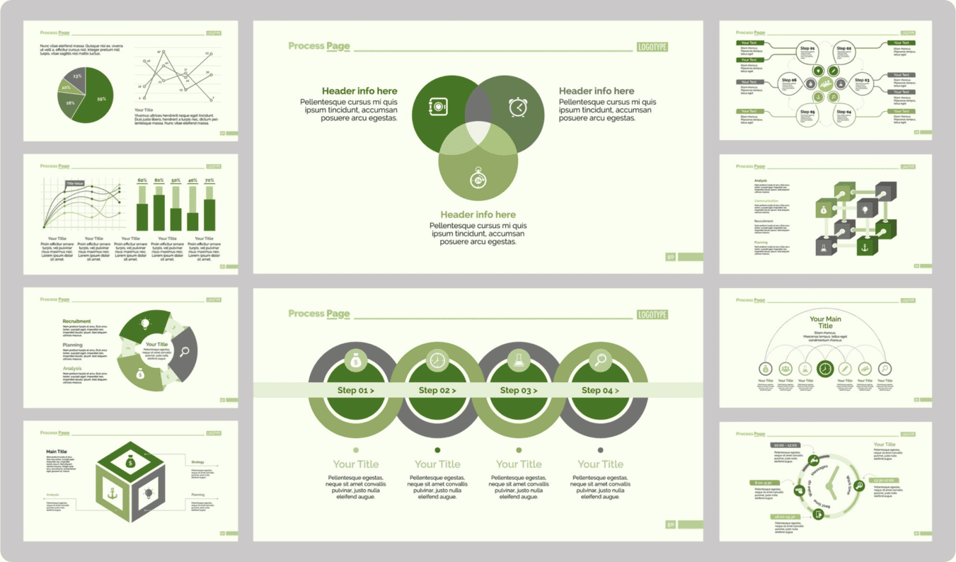 It conveys a sense of order without looking too harsh; it can remain simple without being boring, and can even look premium at times. That’s why someone searching for green PowerPoint templates isn’t actually looking for just one thing.