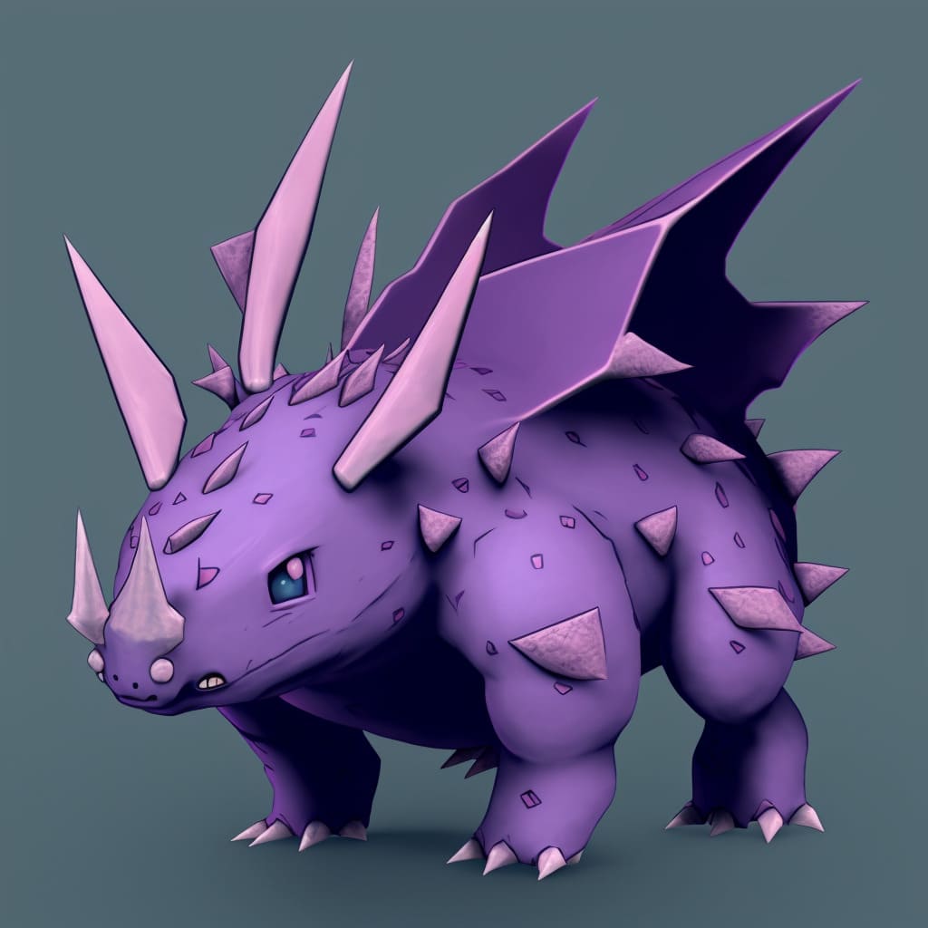Its eyes are usually red but may also be yellow or blue with black pupils. Nidoking's torso is covered by rough scale-like plates that have red edges; these scales become larger towards the upper body and smaller towards the lower body.